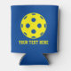 Pickleball can coolers with custom colours and text. Personalised beverage holders for Birthday party, home, BBQ, club house, tournament etc. Blue and yelllow or custom colour. Make your own for pickleball lover, fan, player, dad, mum, son, daughter, sister, brother, father, mother, aunt, uncle, team, friends, teammates, grandpa, grandma, trainer, kids etc.