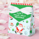 Pickleball party Christmas favour box featuring funny cartoon Santa playing pickleball surrounded by holiday treats.