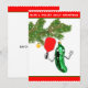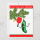 Creative pickleball Christmas cards featuring funny classic pickle ornament playing pickleball.