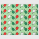 Creative pickleball themed Christmas holiday gift wrap featuring red, green and white pickleball paddles pattern.