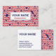Customisable Business Cards for pickleball coaches. USA pattern. Blue, red and white patriotic pickleball pattern with stars, statue of liberty and pickleball paddles on white background. Customisable on both sides