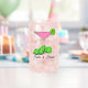 Pickleball pink and green cosmo cocktail with limes. Super fun pickleball drinkware to personalize for a bridal shower, where green pickleballs have been turned into limes in a pink cosmo cocktail for dinks and drinks. Colorful personalized pickleball glass for your pickleball-loving mom, dad, uncle, aunt, brother, sister, neighbor, grandpa, grandma, husband, wife, friend, or work colleague who won't stop talking about pickleball.