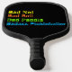 When you make a mistake on the pickleball court, who do you blame? The Ball, the pickleball net, your pickleball paddle, your pickleball partner, the wind, some distraction? You definitely don't blame yourself right? Awesome fun pickleball graphic - bad net, bad ball, bad paddle badass pickleballer. Colourful pickleball-themed gift for your pickleball-loving mum, dad, uncle, aunt, brother, sister, neighbour, grandpa, grandma, husband, wife, friend, or work colleague who won't stop talking about pickleball. Yellow, Orange, Green Blue stripes on black.