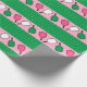 Creative pickleball gift wrap or party decor featuring hot pink and cool green paddles pattern and small yellow balls.