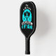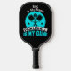 Your name declaring that pickleball is your game. Blue and white on a black background.