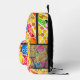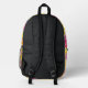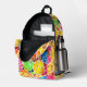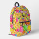 Colourful, sunny, pickleball court gear bag backpack. Pickleball is a court sport for any age and athletic ability. Between the dinking, banging and long rallies lifelong friendships are forged. Super colourful graphic with pickleball balls, yellow, orange honeycombs, hexagon shapes, and a big yellow pickleball wearing sunglasses and smiling.