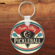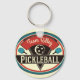 Support your pickleball team with your own personalised pickleball key chain. Vintage colours and vintage design. Features a pickleball and pickleball paddles.