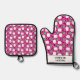 Pickleball Kitchen Line Personalise Magenta Green Oven Mitt & Pot Holder Set