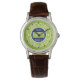 Lovely pickleball design for all pickleball fans, young or old. Live, love and pickleball. Nice fresh green colour. Custom text Watch with numbers. Pickleball court in the middle. Great minds dink alike on top, Name at the bottom.