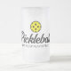 Pickleball lover glass beer stein gift for friends and family. Funny quote with yellow ball logo. Eat sleep play repeat! Cool Birthday gift idea for pickleball player, fan, mum, dad, coach etc.