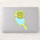 Vinyl sticker features green and blue pickleball paddle, curved text and yellow game ball.