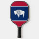 Wyoming flag pickleball paddle, American bison sports gear, red white blue paddle design, patriotic state flag equipment, western pride court accessory, Cowboy State athletic paddle, symbolic and stylish sports item, USA heritage inspired paddle, rugged and expressive game gear, high quality printed pickleball paddle, performance and pride design, artistic frontier identity paddle, durable and comfortable grip paddle, cultural tribute sports equipment, bold regional symbolism paddle, lightweight flag themed paddle, unique Wyoming pride paddle, American West sporting accessory, iconic state flag game tool, vibrant state identity paddle.