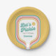Add these fun paper plates to your next pickleball party. Design features a retro stripe outline of a Pickleball Paddle and the words "Let's Pickle" in a fun font. Easily add your custom text - player's name, pickleball club/tournament name, etc. Great for an adult or kid's pickleball birthday party, girl's or guy's pickle gathering, pickleball club special event or everyday fun. Let's Play - the best sport ever!!