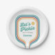 Add these fun paper plates to your next pickleball party. Design features a retro stripe outline of a Pickleball Paddle and the words "Let's Pickle" in a fun font. Easily add your custom text - player's name, pickleball club/tournament name, etc. Great for an adult or kid's pickleball birthday party, girl's or guy's pickle gathering, pickleball club special event or everyday fun. Let's Play - the best sport ever!!