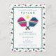 Celebrate your pickleball player or fan with these fun and vibrant party invitations featuring striped blue, green and pink pickleball paddles. Text is customisable. Birthday age is also customisable. Part of a collection from Parcel Studios.