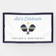 Welcome your party guests with this custom pickleball banner featuring striped blue, green and yellow pickleball paddles. All text is customisable. Part of a collection from Parcel Studios.