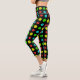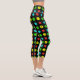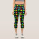 Pickleball Pattern multicolor Capri Leggings with a black background.