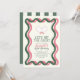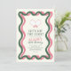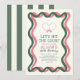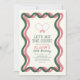 This retro "Let's hit the court" woman's birthday invitation features a pair of pink racquets on a cream background with pink and green wavy frames. The reverse side features a cream background with green stripes/borders. Personalise for your needs. You can find more matching products at my store.