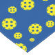 Pickleball print table runner for party or event. Sporty design with yellow balls.
