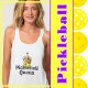 Are you or do you know someone who is the queen of the pickleball court? Then they deserve a crown. Fun graphic of a yellow pickleball wearing a gold and purple crown for any pickleball queen to rule the court.