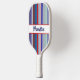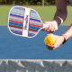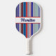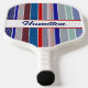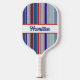 Personalised red, white, and blue pickleball paddle. Colourful, patriotic, stripes in a variety of fun patterns - polka dots, stripes, herringbone, zigzags - fill this fun pickleball paddle to personalise with your first or last name or pickleball nickname. Colourful pickleball paddle gift to customise for your pickleball-loving mum, dad, uncle, aunt, brother, sister, neighbour, grandpa, grandma, husband, wife, friend, or work colleague who won't stop talking about pickleball.