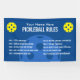 Pickleball play rules and etiquette banner for courts. Custom outdoor banner sign for hanging up on fence. Personalise with your own location, club name, sponsor, tennis complex etc. Help to keep courts clean, safe and organised. Top 10 list can be edited with more official regulations and tips. Colours and layout can be changed.