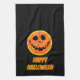 Pickleball pumpkin turned into a happy skeleton jack-o'-lantern. Awesome Halloween-themed pickleball kitchen towels for a pickleball player. Fun orange and black pickleball Halloween towels for your pickleball-loving mum, dad, uncle, aunt, brother, sister, neighbour, grandpa, grandma, husband, wife, friend, or work colleague who won't stop talking about pickleball.
