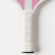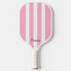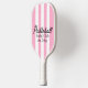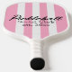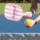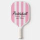 A girly pink retro stripe design: Pickleball Social Club Established Year. Trendy pink and white stripes. Add your name to personalise. Black modern script typography.