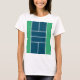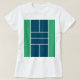Creative pickleball player shirt featuring court and yellow ball.