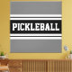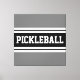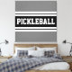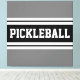 This fun sporty design features PICKLEBALL text inside a highlighted wide black stripe with double white stripes against a grey background.