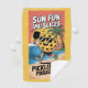 SUN FUN AND SLICES is the bold, playful headline featured on this vibrant towel, with PICKLEBALL PARADISE printed below to complete the tropical theme. The design showcases a cheerful pickleball mascot wearing sunglasses, a black shirt, grey shorts, and green sneakers, running across a sunny beach with paddle in hand. A radiant sunset, palm trees, ocean waves, and flying birds create a lively vacation vibe. Ideal for any pickleball club, team, or tournament hosted at a tourist resort or beachside destination. This large beach towel makes a perfect gift for any pickleballer, fan, coach, or player who loves stylish, funny, and sporty gear. Whether you're dinking in the kitchen or relaxing after a match, this towel brings the spirit of pickleball paradise to life.