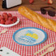 Dress up your party table with these fun pickleball paper plates. Design features a pickleball "sun" framed by a tropical palm tree and blue ocean waves. Perfect for a pickleball birthday party, club team event, tournament after party or backyard courts.