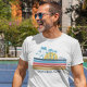 Super cool Pickleball T-shirt featuring a pickleball "sunset" and retro vintage stripes. Add two lines of custom text - your pickleball club name, location, team name or pickleball saying. Makes a perfect gift for a pickleball friend, mum, dad or get two shirts - one for you and one for your tournament partner.