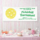 Announce your pickleball tournament or club event with this awesome banner featuring a yellow pickleball and three lines of customisable text. You can easily change the colour of text and pickleball. Perfect for Pickleball clubs, tournaments and events.