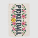 PICKLEBALL is the bold headline centred in this vibrant floral design. Surrounding the text are pink hibiscus-style flowers, green leaves, and red berries arranged symmetrically, creating a cheerful and tropical atmosphere. At the bottom centre, a yellow perforated pickleball adds sporty flair. This sports towel is perfect for any pickleball club, team, or tournament hosted at a tourist resort or vacation destination. Whether you're gifting a pickleballer for a birthday, celebrating a holiday, or outfitting your coach or fan crew, this product blends stylish celebration with athletic pride.