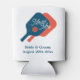 Pickleball wedding can cooler. Fun themed beverage holder. Sporty logo design with paddle racket and ball. Personalise with names of bride and groom. Also great for engagement party or anniversary. Blue and orange colours can be changed to your own favourite colours. Cute template for future Mr and Mrs. Part of affordable collection set with stationery and trendy decorations. The perfect match for pickleball lovers!