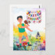 Pickleball with flowers rainbow themed Birthday Postcard