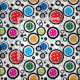 Multicoloured pickleballs and black circles on white background. Great as room décor or pickleball clothing