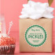 Pickles canning jar label with all custom text in a modern style green on beige. Change all text to your own version for homemade canning gift or small batch food producer.