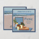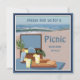 A graphic design of picnic basket, and food at the beach by artist/designer Charmaine Paulson on a picnic cookout invitation. The invitation has text templates for your personalisation. ©2012charmainepaulson