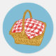 A stylised image of a picnic basket. Imagine the delicious food contained in this cute picnic basket with red and white checkerd cover.