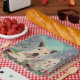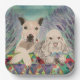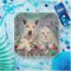 Watercolor memorial of sweet dogs, with multicolored quilt and background of lavender