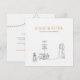 The minimalist black and white colour scheme of this wedding invitation exudes sophistication and modernity, making it a stylish choice for couples who appreciate simplicity and elegance. The thoughtful details in the illustration, such as the couple's embrace and the picnic elements, add a touch of whimsy and charm to the overall design. The combination of classic black and white with a vibrant pop of orange creates a visually striking contrast that is sure to catch the eye of your guests.
