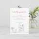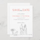 This save the date card is the perfect blend of modern and casual, with a black and white minimalist theme accented by a pop of orange. The front of the card provides the opportunity to showcase a special image, adding a personal touch to the announcement of your upcoming event. On the back, the casual and informal wording is complemented by simple typography in a charcoal colour, creating a relaxed and inviting feel. The addition of a minimal line art illustration featuring a couple holding hands with a golden retriever tied to a signpost adds a touch of charm and warmth to the overall design. This save the date card is a wonderful way to inform your guests of your special day in a stylish and heartfelt manner.