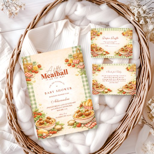 Picnic Green Gingham Little Meatball Baby Shower Invitation