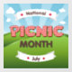 National Picnic Month, annual USA holiday in July celebrates the love of being outside and having a nice relaxing meal together with family and friends, red gingham checks text, blue sky background. See more products with this design in this store's Picnic Month is July! category. Just click my store link or icon and scroll.