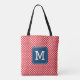 Carry your things with this stylish monogrammed all-over-print tote bag featuring featuring a picnic red gingham pattern.