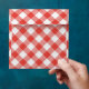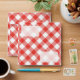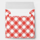 Customisable square envelope with red and white chequered gingham pattern (picnic tablecloth fabric). You may customise it and add your return address on the front of the envelope.