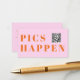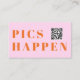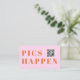 Modern pink, orange font, wedding "Pics Happen" QR Code, Photo-Gallery-Website, QR-Code, Enclosure Card. Personalized with your names, photo-gallery-website, scannable QR code and message to keep your friends and family up to date about your upcoming special day.