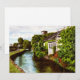 Lovely scenic view of homes along the canal in beautiful Galway City, Ireland. In the distance you can see a bridge crossing the canal, from a watercolor painting by Daniel Fishback.